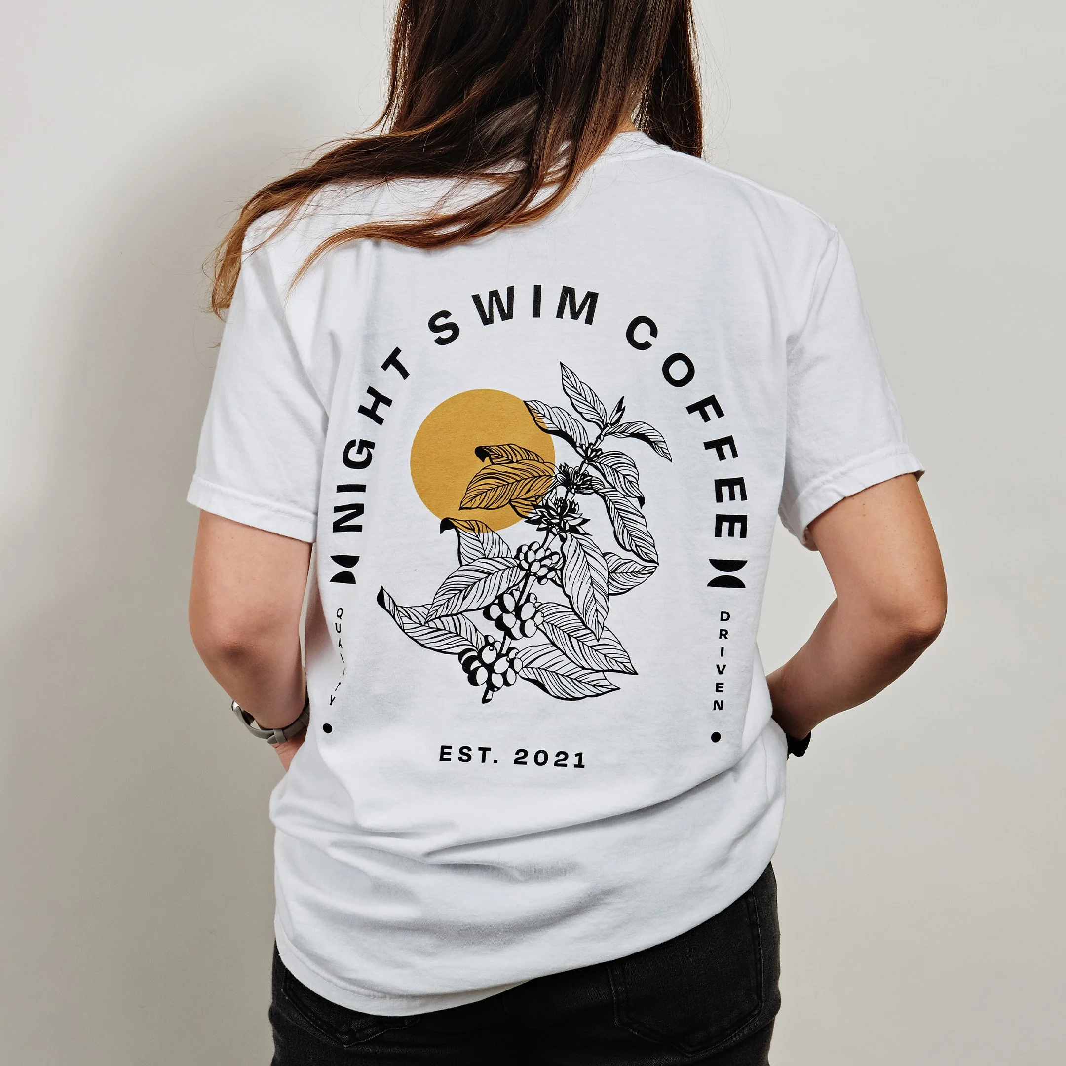 New merchandise products to create more connection and excitement between customers and their brands. These are a few examples of custom branded illustrative and graphic design merchandise to be featured on t-shirts, tote bags, hats, and mugs for Night Swim Coffee and Undercurrent Coffee during the holiday season.