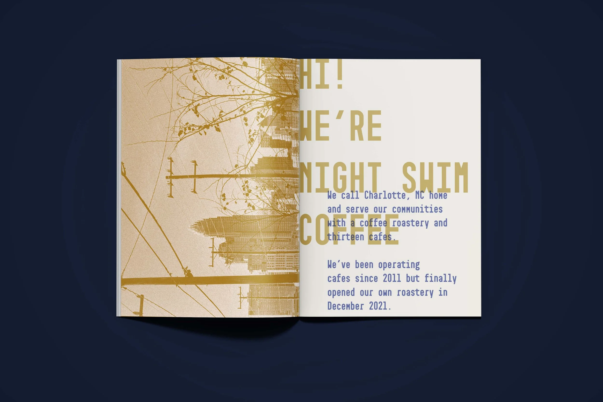 Booklet design for Night Swim Coffee at the 2023 SCA Expo.