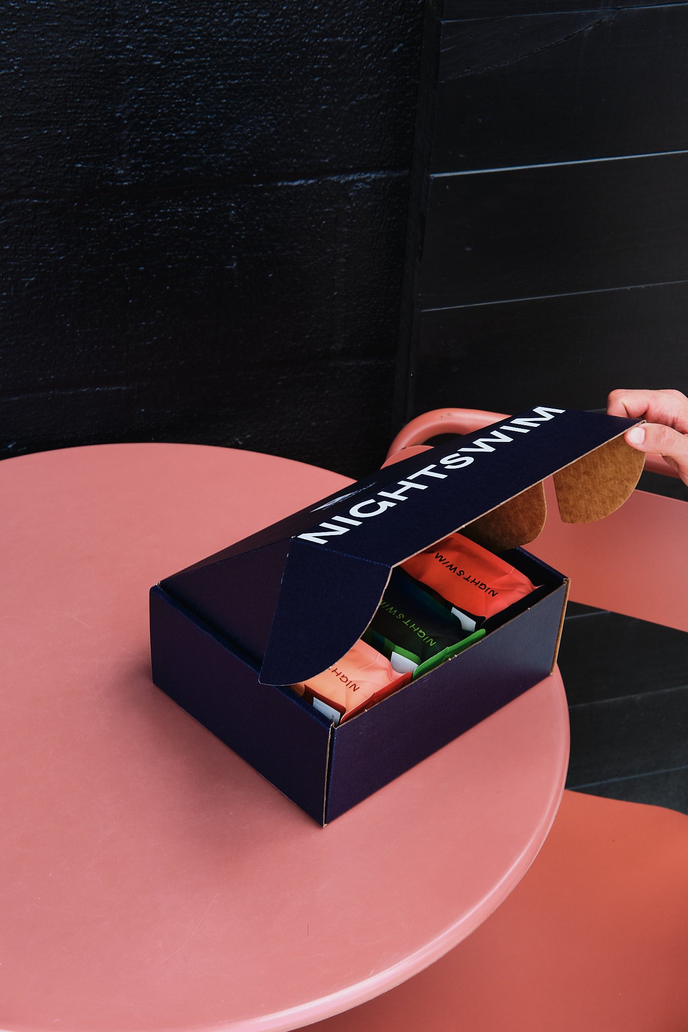 The goal with this mailer piece was to create something simple, elevated, timeless and classic, no fuss, and to let the logo and navy blue be recognized. This box can be and is the first time a lot of people will be in contact with the Night Swim brand and so I centered the design around a “less is more” approach. The large format title on the front flap “Night Swim” is there to create a sense of impact and excitement as someone goes to open their box of coffees.